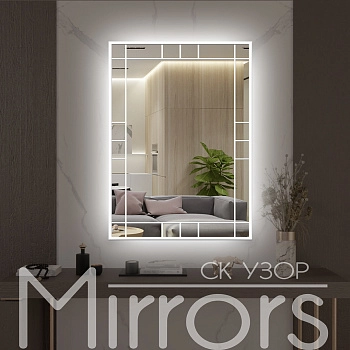 Зеркало с подсветкой в раме металлической Clear art white