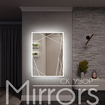 Зеркало с подсветкой в раме металлической Mist art white